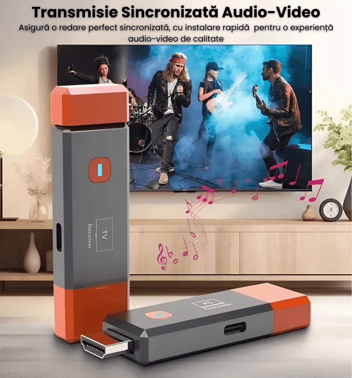 Acest sistem de transmitere HDMI wireless iti permite sa partajezi continut video si audio in format Full HD 1080P la 60Hz fara cabluri incomode. Functioneaza pe banda de 5.8G pentru o conexiune stabila, cu transmisie fluida si fara intarzieri, oferind o experienta vizuala si sonora exceptionala.