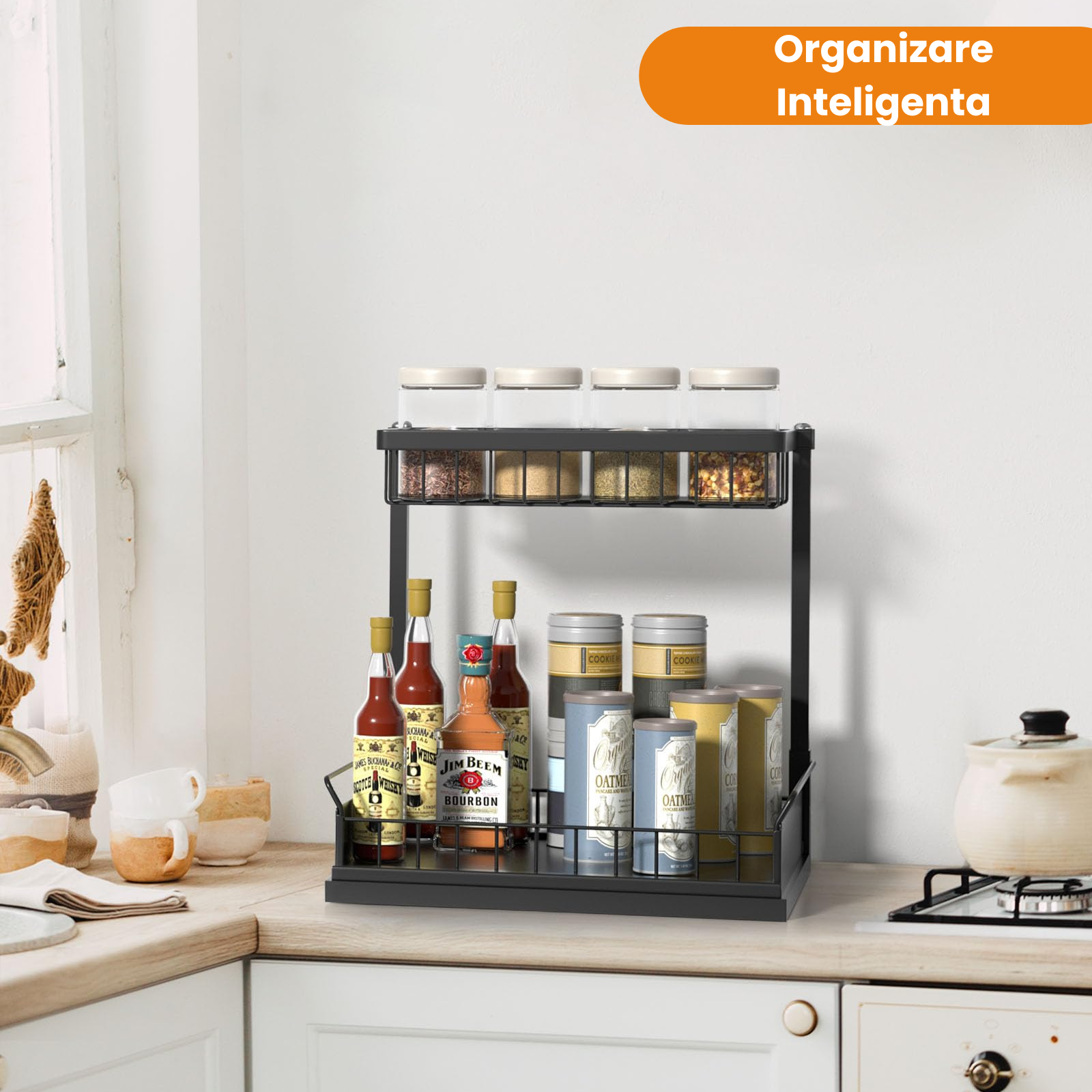 Acest organizator metalic multifunctional este perfect pentru a economisi spatiu si pentru a crea un aspect ordonat, modern si functional in orice incapere.