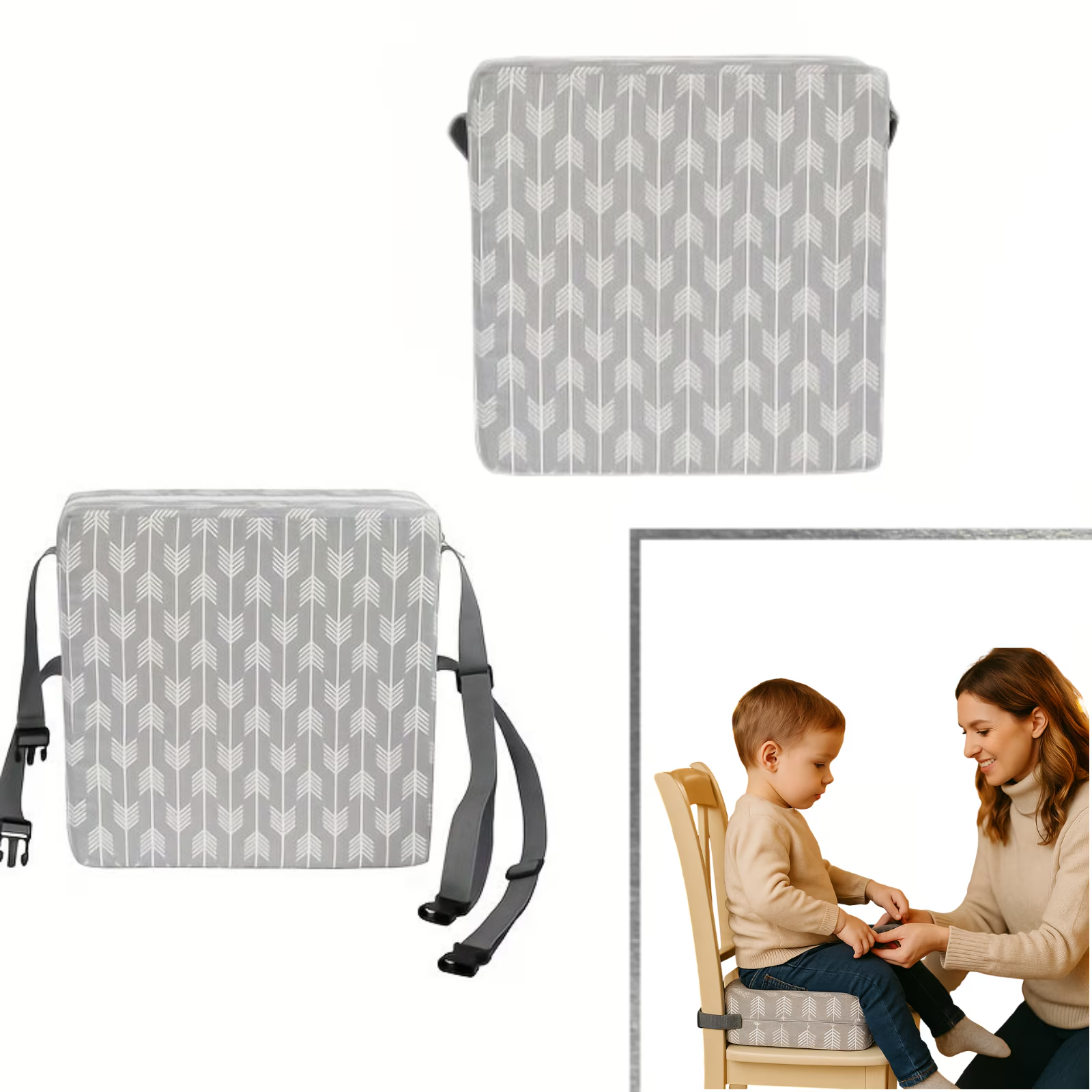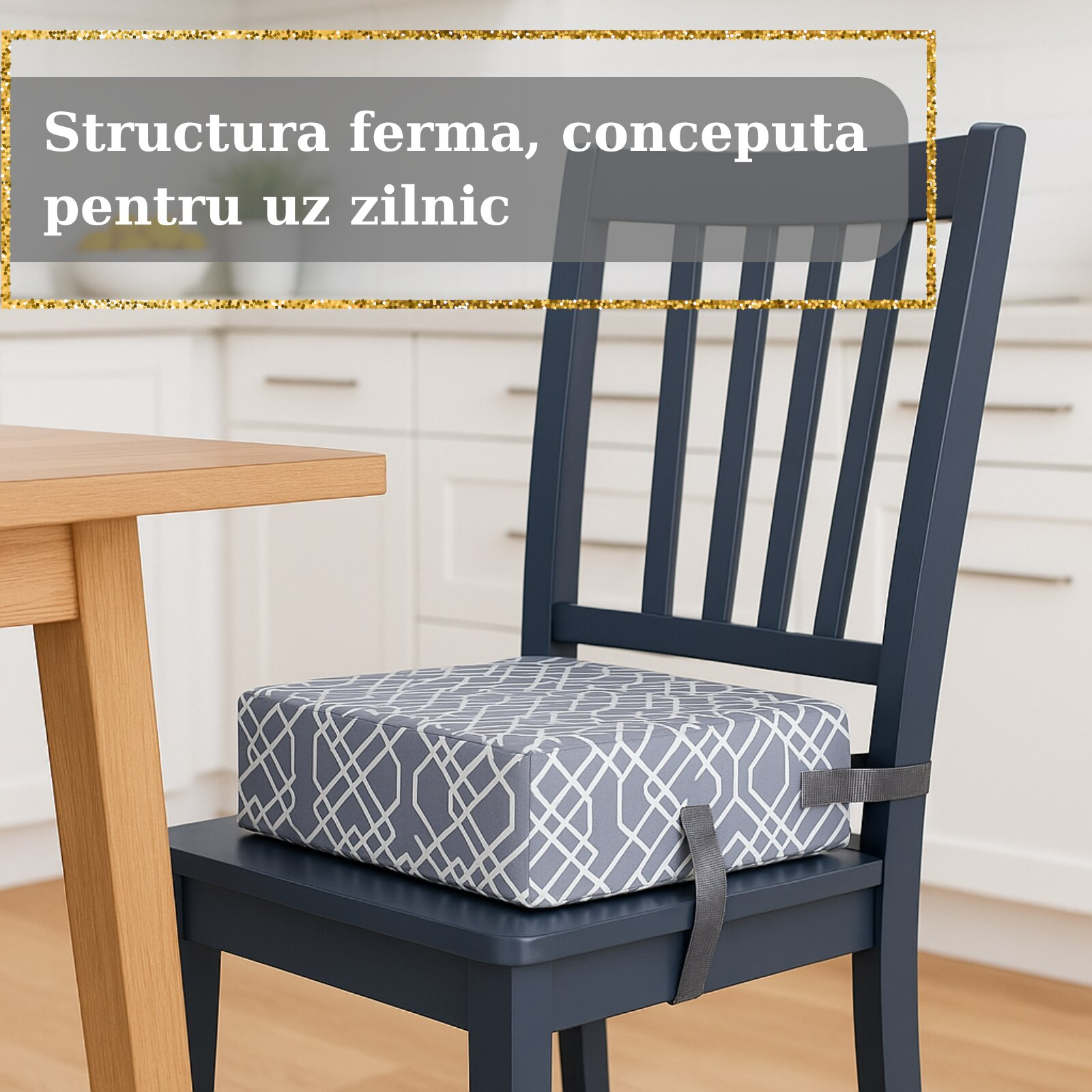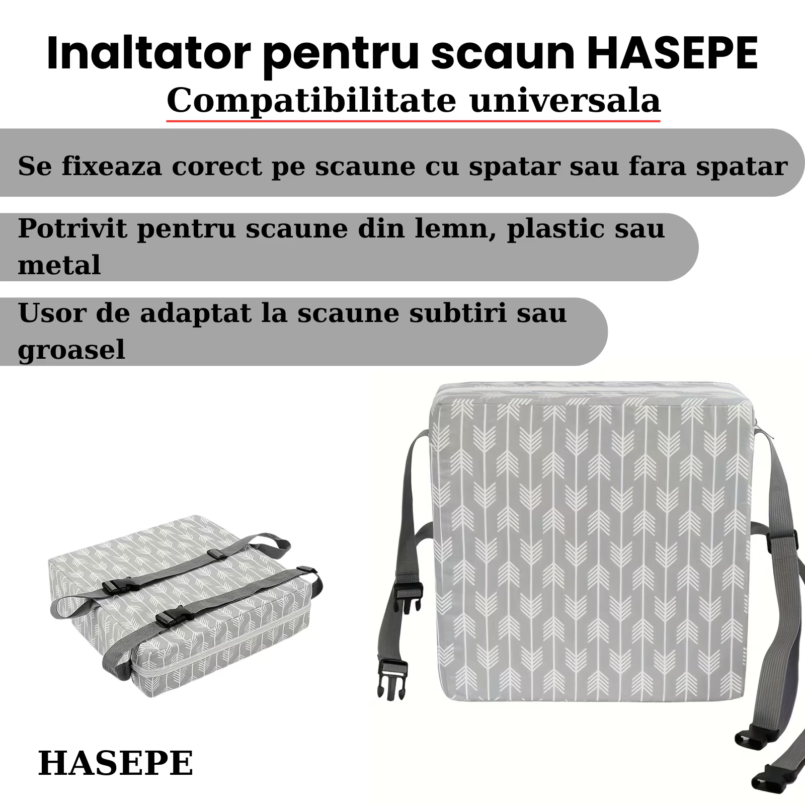 Cu un design compact si o pernuta inaltatoare confortabila, produsul se fixeaza rapid pe majoritatea scaunelor, oferind stabilitate si siguranta la fiecare utilizare.